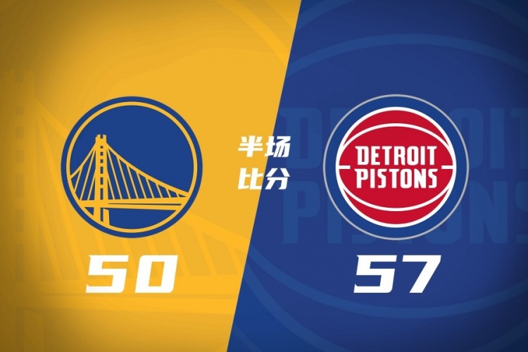 勇士半场50-57落后活塞 梅尔顿14分 追梦5助4失误 波津回更衣室